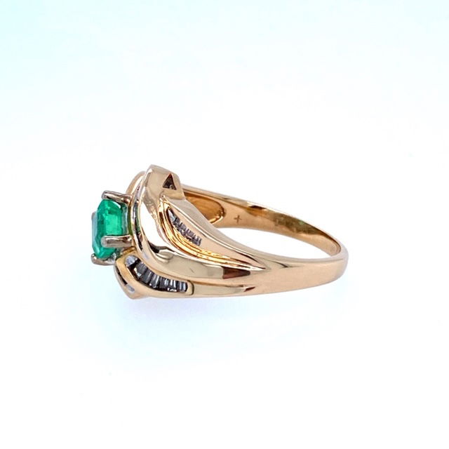 - 14KY 7.6g Emerald~.61 ct w/ Bag Dia~.50 ct SI H-I Ring Sz 7.75