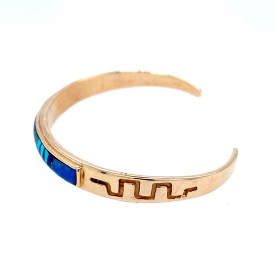 - 14KY 14.7g Barbara/Gary Gordon (BGMudd) Inlay Cuff Bracelet 7"
