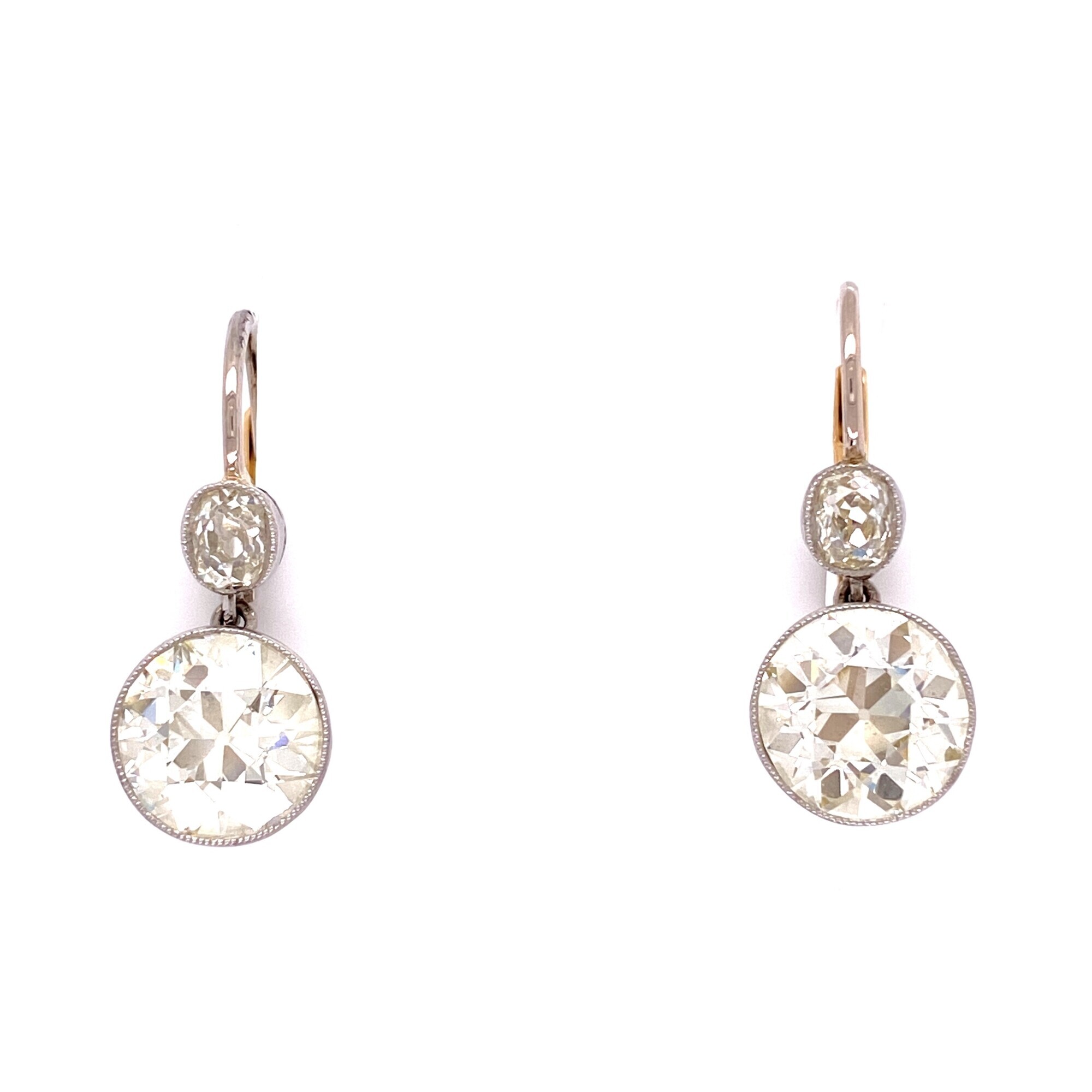 Platinum 5.06tcw OEC Diamond Drop Earrings with .60tcw diamond tops, .8"