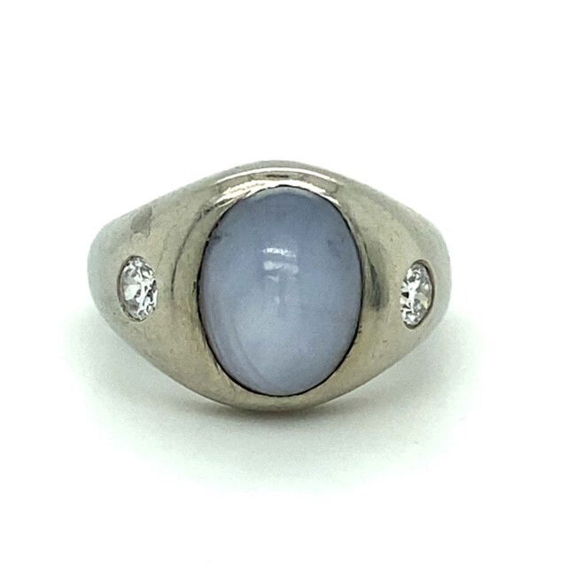 14KW 7.5g Star Saph~8 ct & 2 x OE Dia~.26 ct VS G-H Ring Sz 5 | Auric Estate Jewelry