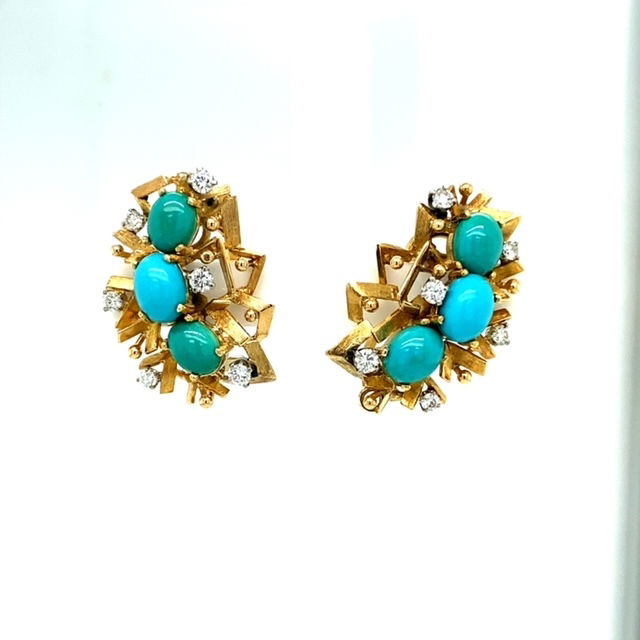 18KYW 15.2g Persian Turquoise & 12 x DIa~.74 ct 1.25" | Auric Estate Jewelry