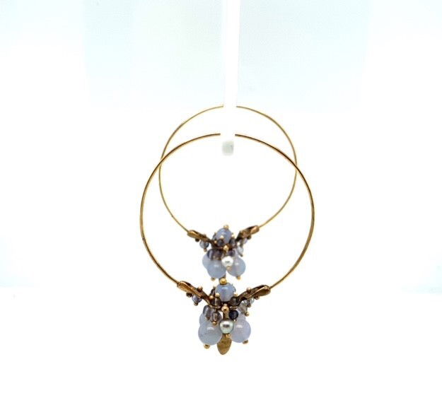 Thin wire hoops with chalcedony & iolite beads with seed pearls