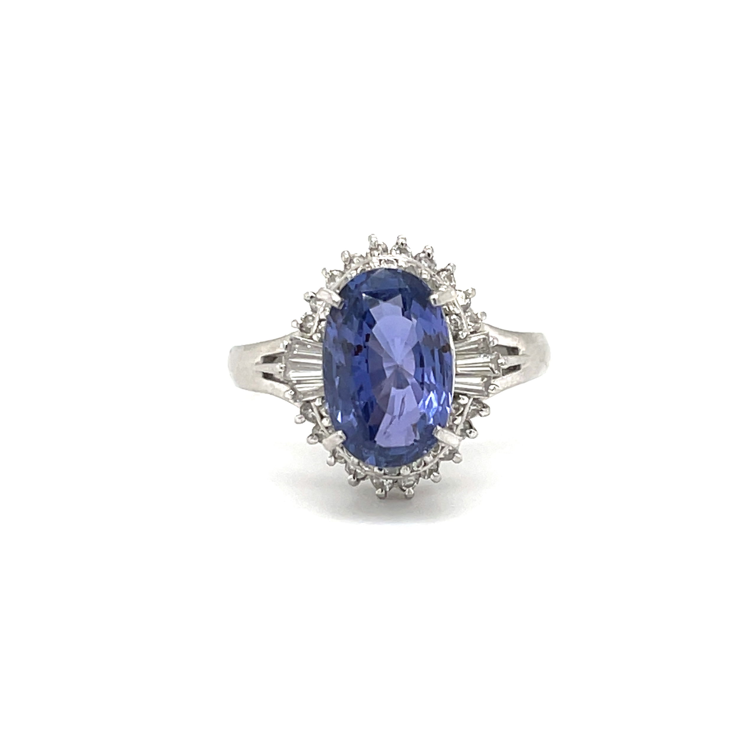 Platinum 3.88ct Sapphire & 0.52ct Diamond Ring 7.5g sz 7.75