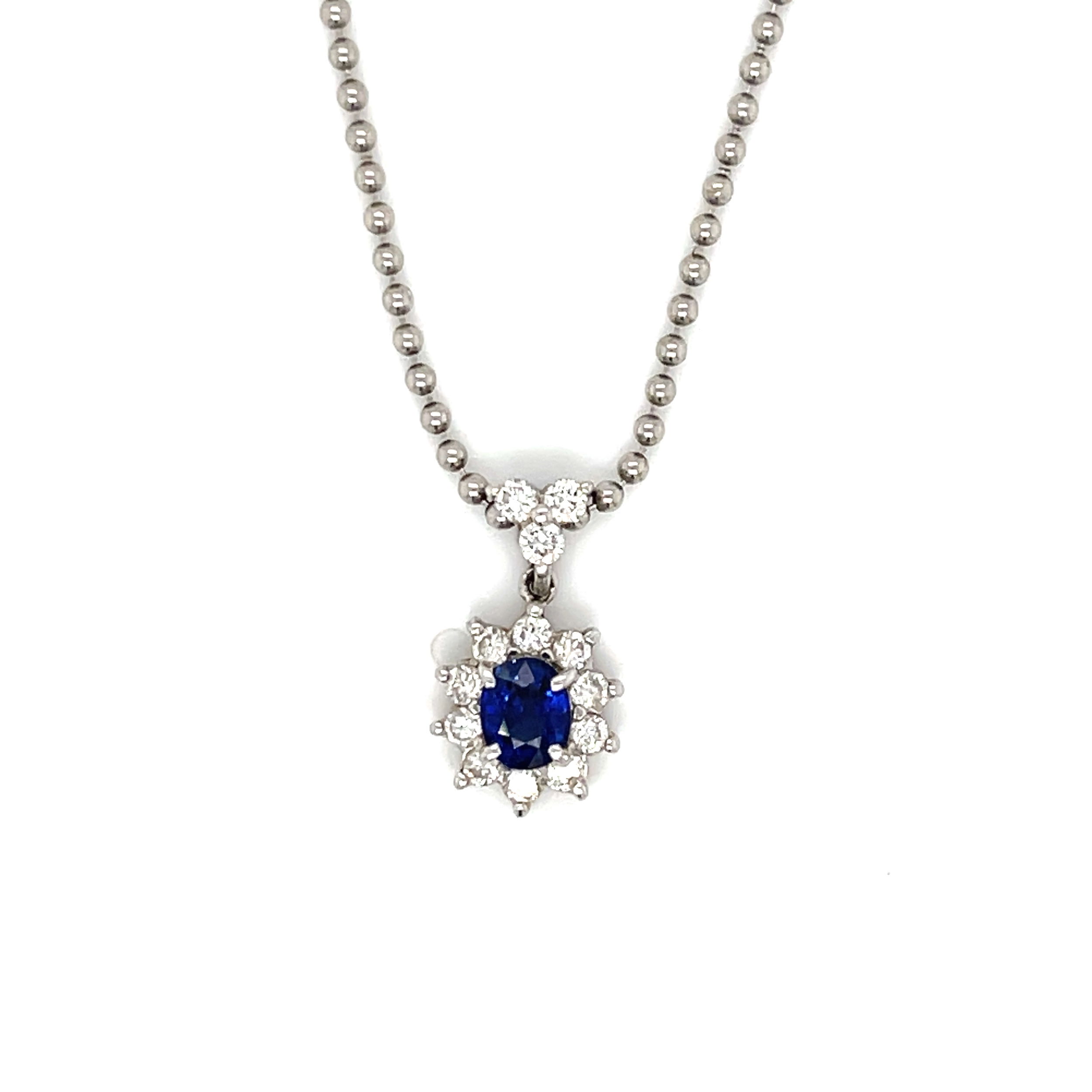 - Platinum 0.54ct sapphire & 0.37ct Diamond Pendant & 16"Chain 6.3g