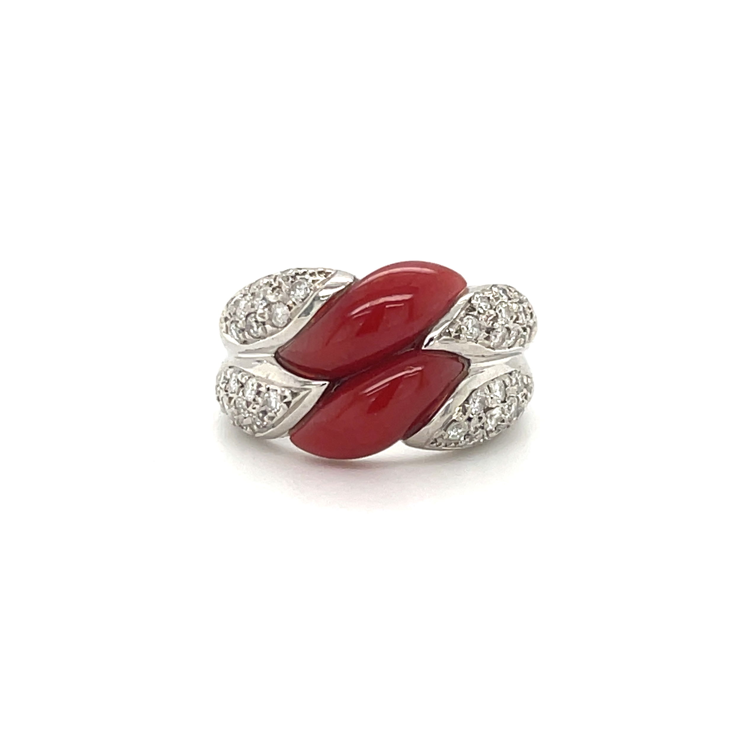Platinum Red Coral & 0.66ct Diamond Ring 12.1g sz5.75