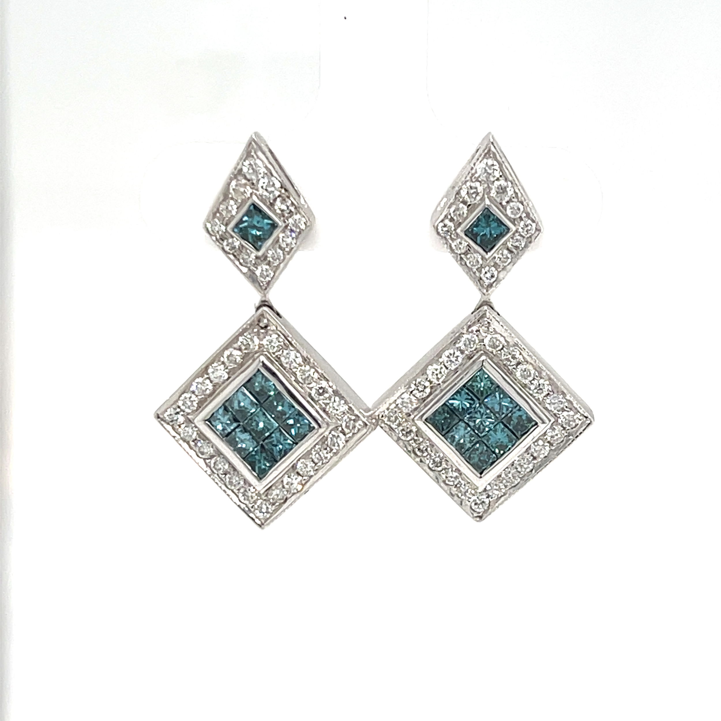 14KW Blue & Wht Diamond Earrings Approx 2.00cts 8.1g