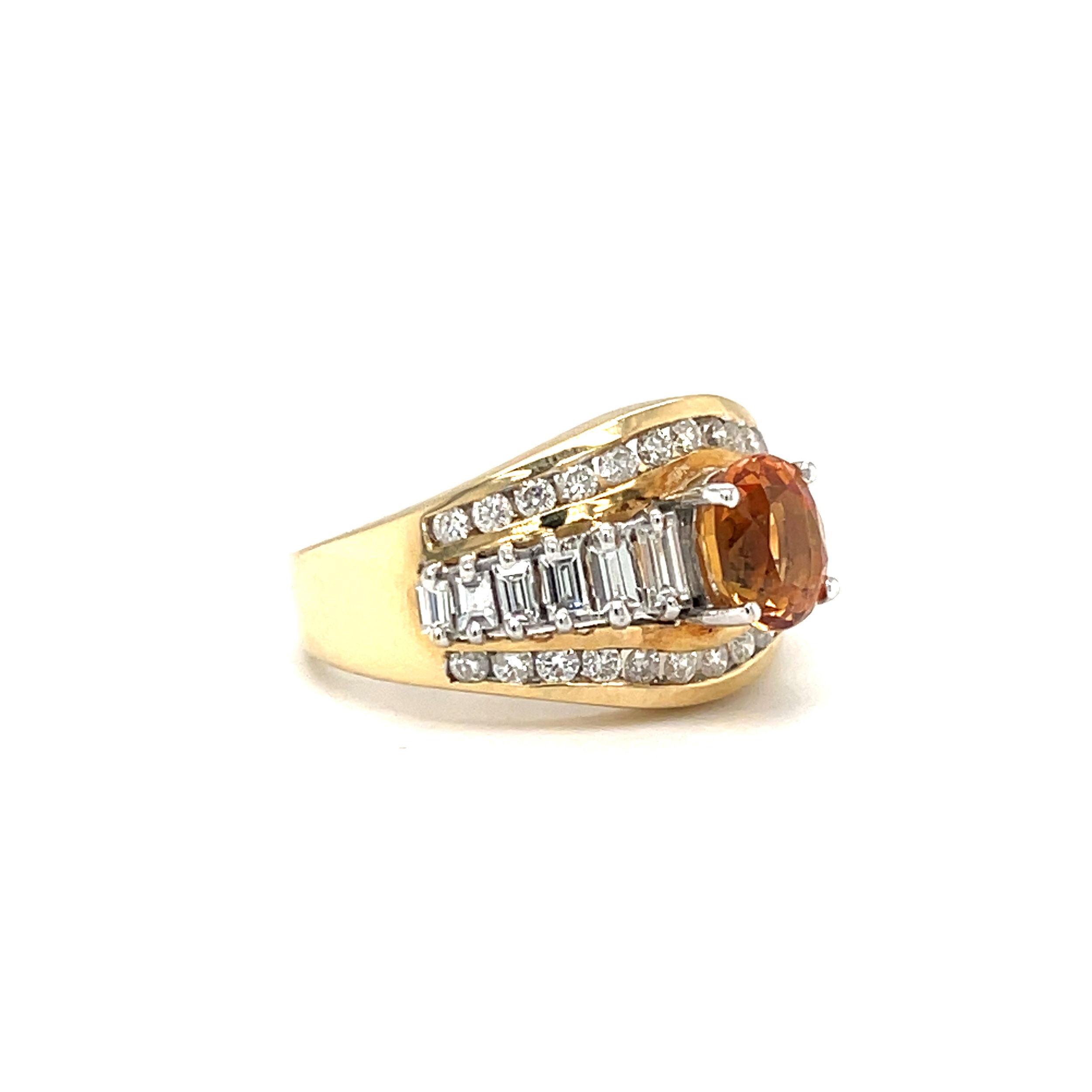 - 14KY 1.72ct Nat. Orange Sapphire & 1.05cts Diamond Ring 6.8g sz 6.5