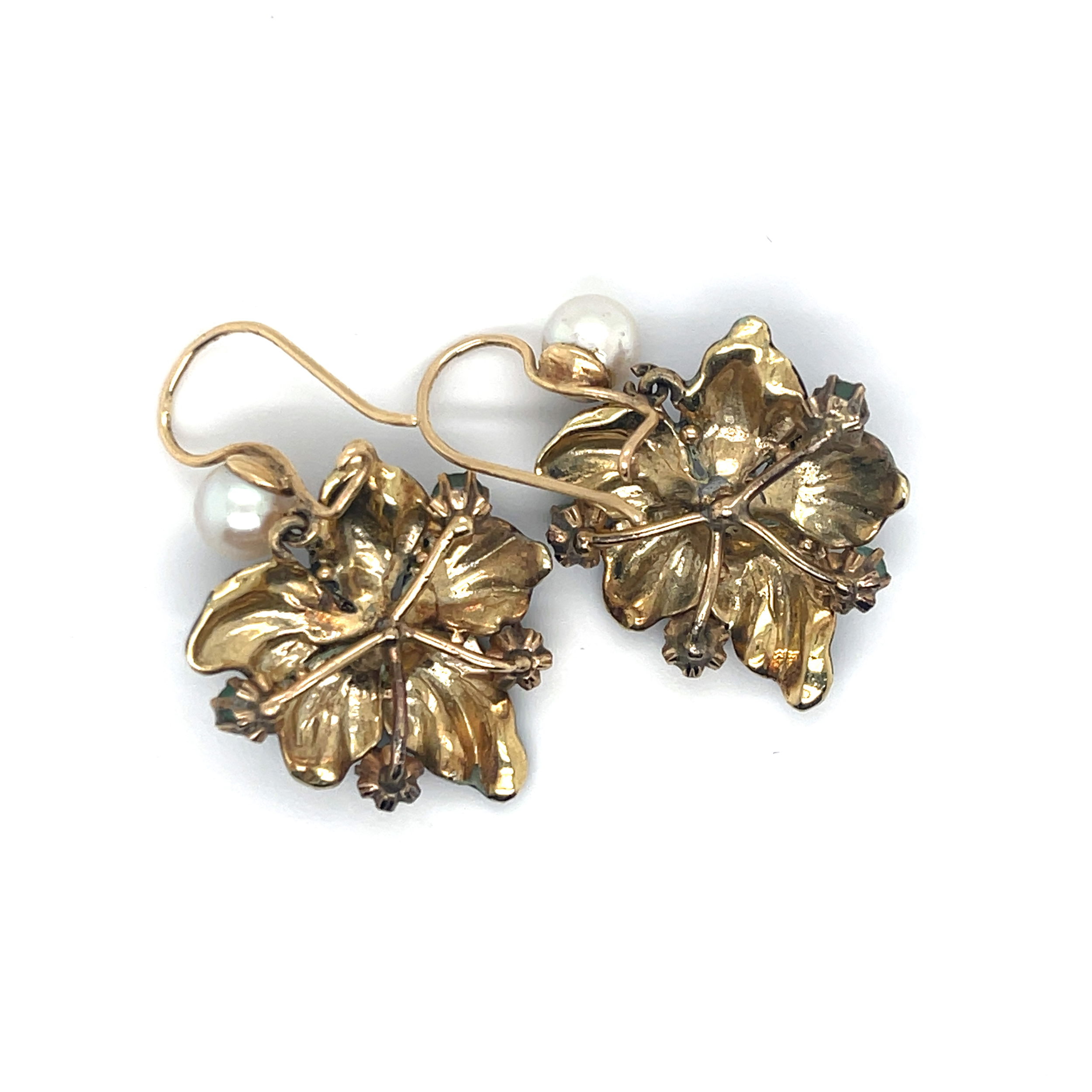 14KY Enamel Flow Earrings Diamond, Pearl, Emeralds