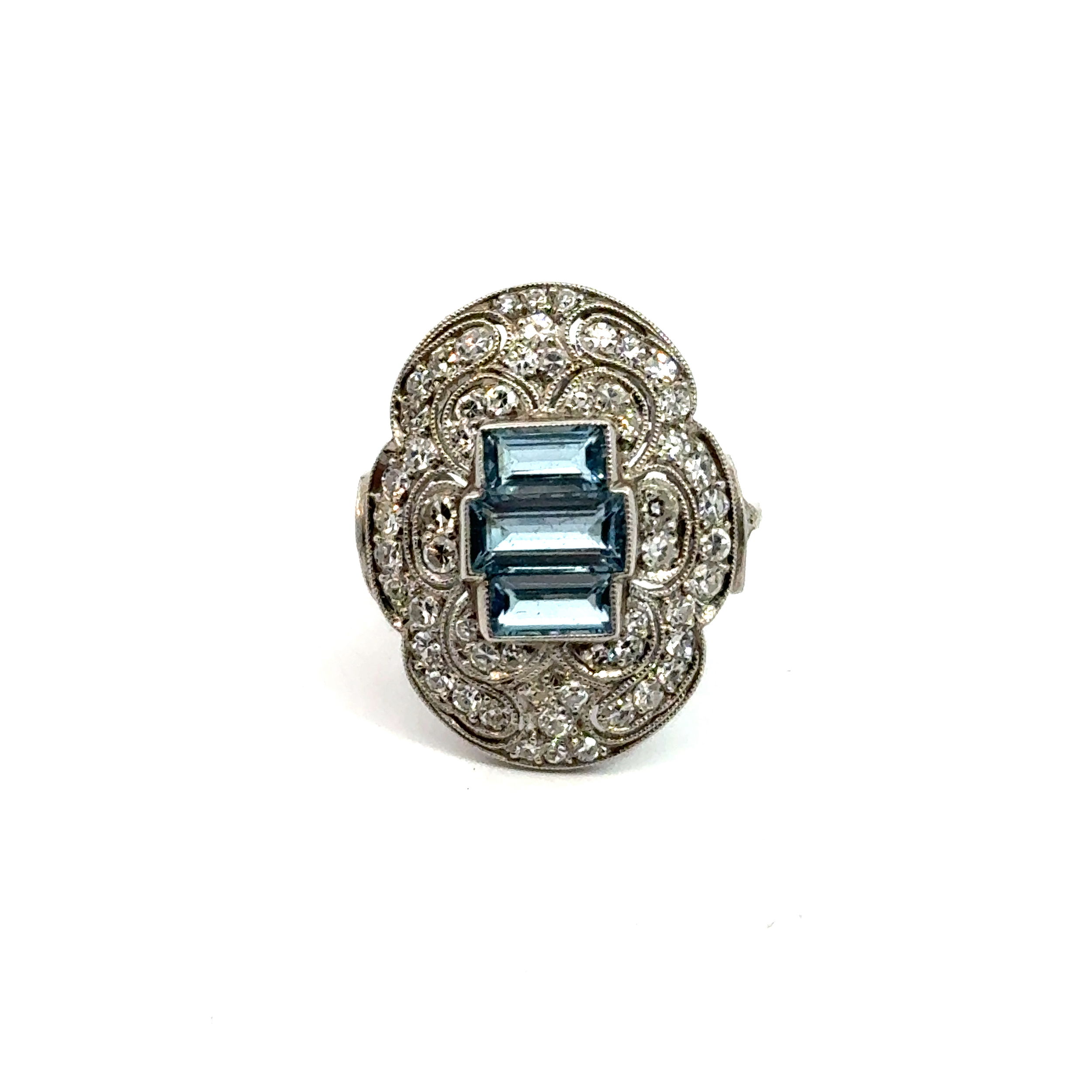 Plat Ring 1.45ct Aqua & 62Dia=1.18ct 7.5g sz8
