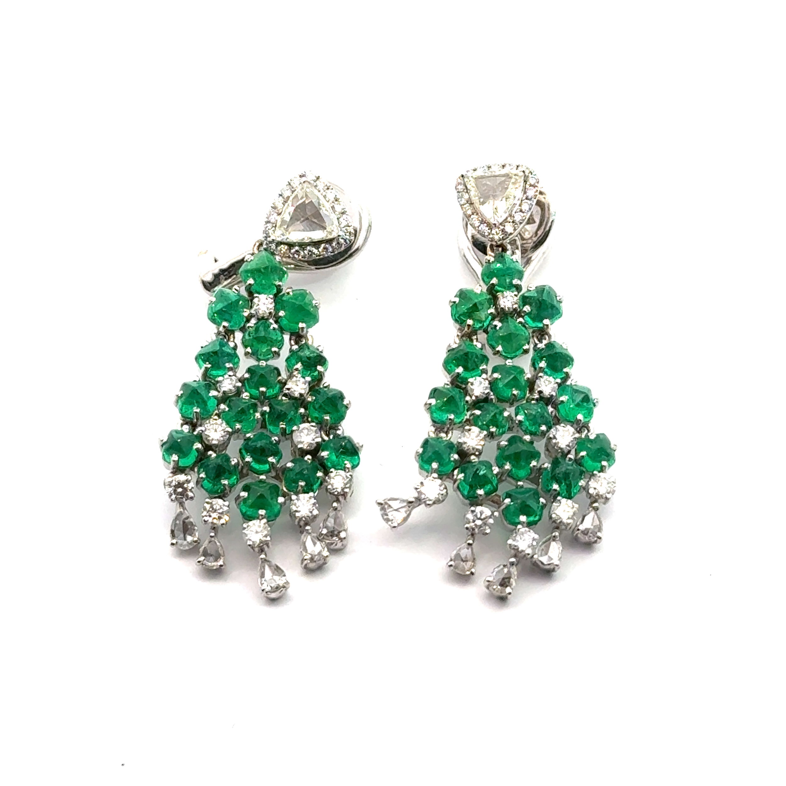 18KW ~6ct Sugarloaf Emeralds and ~2ct Diamond Earrings 18.1g