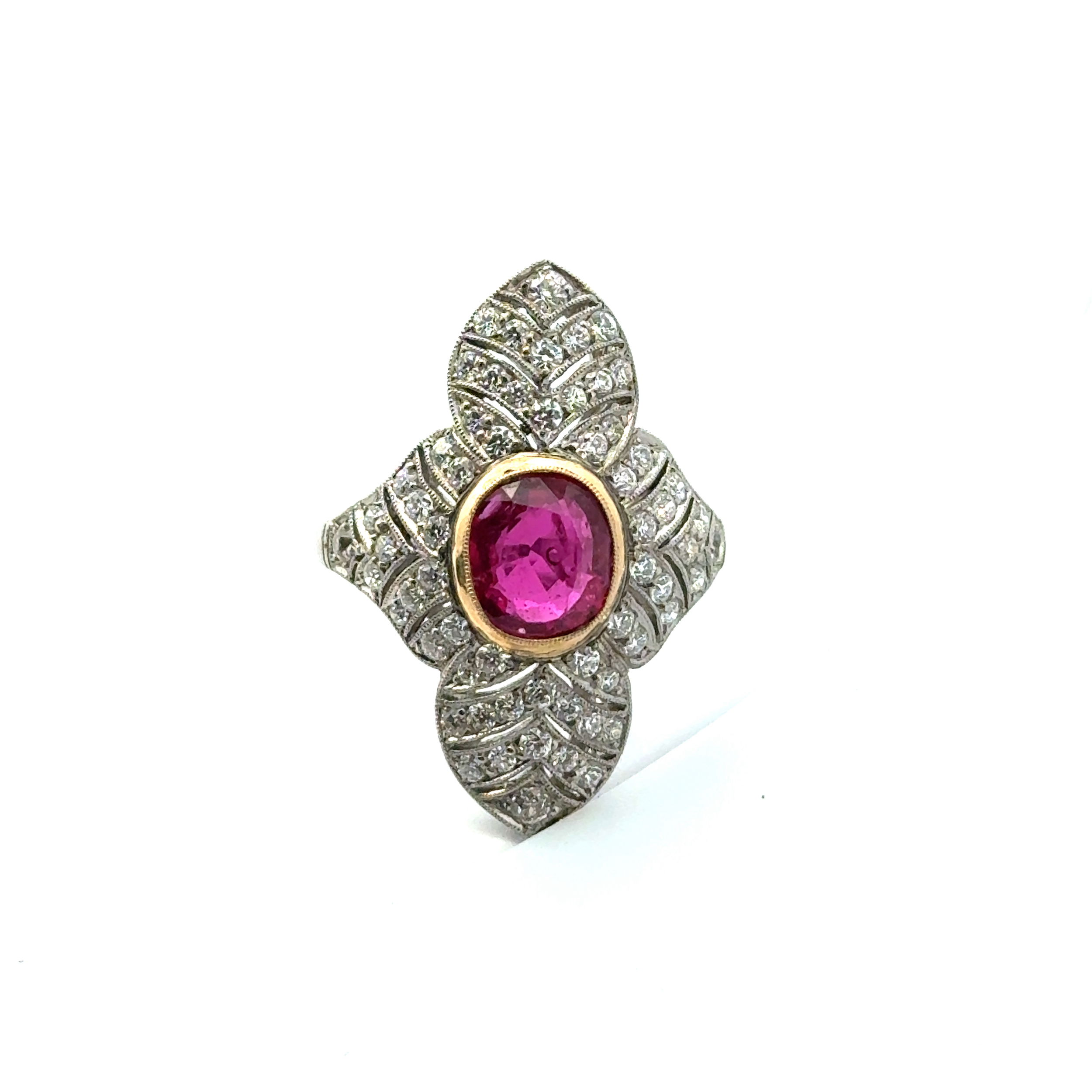 Platinum Handmade Deco Style Ring 1.85ct GIA Ruby & 62 OE Dia =1.18ct sz7.5 | Auric Estate Jewelry